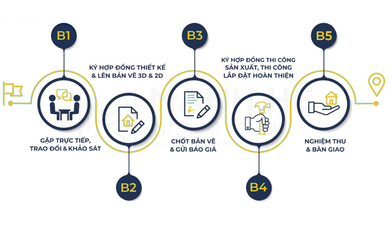 Chi tiết 5 bước quy trình thiết kế thi công nội thất Hoàng Anh
